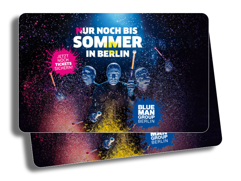 Bitte gib auf der nächsten Seite deine Gewinndaten ein und gewinne 2 Tickets für die Blue Man Group in Berlin!